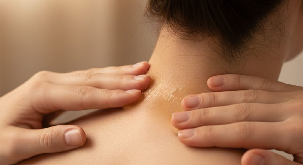 Cette synergie permet d’apaiser les tensions du bas du dos, des trapèzes et des cervicales sans sensation de brûlure agressive.